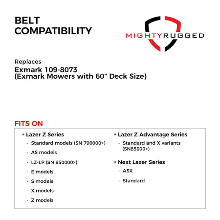 109-8073 Exmark 60" Deck Belt — Fits Lazer Z Standard, Lazer Z AS, Lazer Z LZ-LP | Aramid Cord