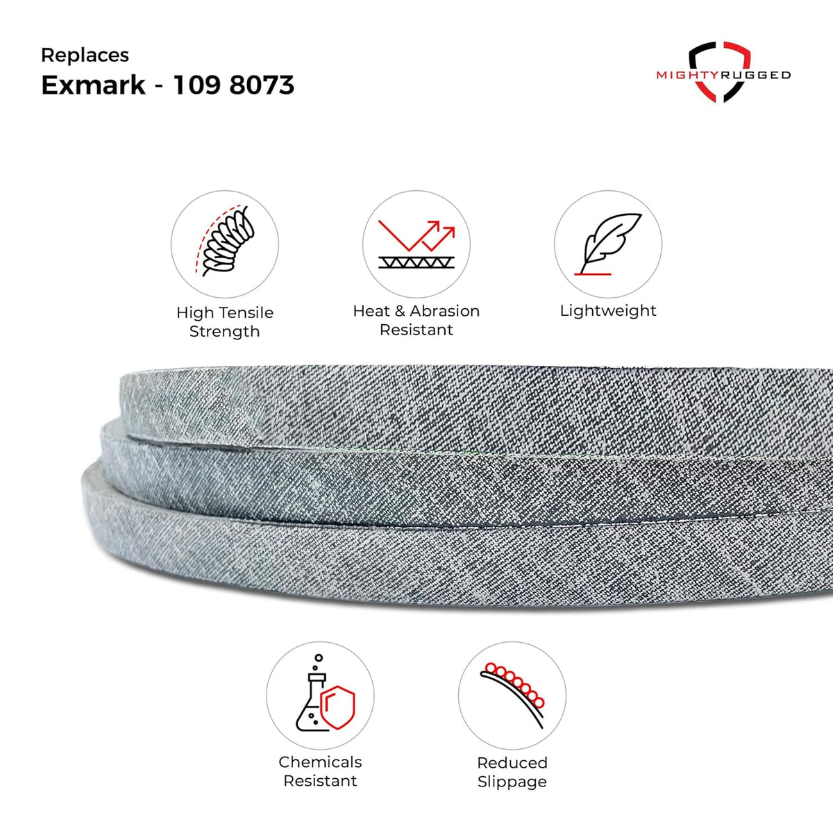 - Aramid/Kevlar Cord Construction — 2-3x longer life than standard rubber belts