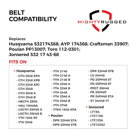 174368 Craftsman 48" Deck Belt — Fits GTH2248XP, GTH2548, YTH1848XP | Aramid Cord