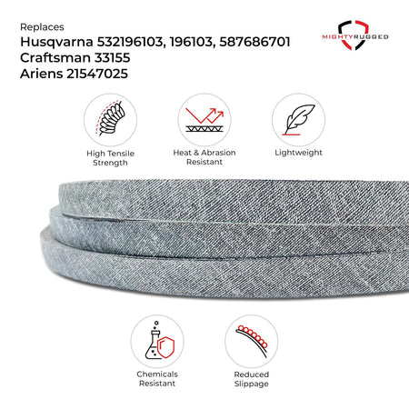 Premium Aramid/Kevlar cord deck belt replacement for 196103. Engineered to match OEM specifications at 40-60% less than dealer prices.