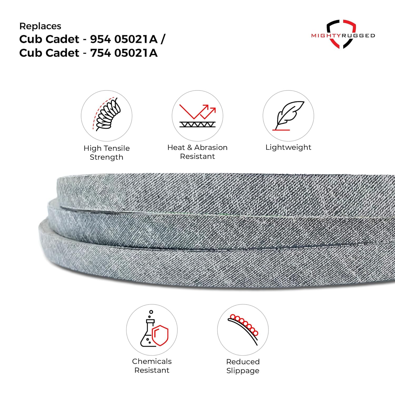 Premium Aramid/Kevlar cord deck belt replacement for 954-05021. Engineered to match OEM specifications at 40-60% less than dealer prices.